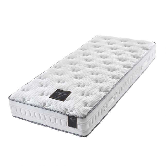 Matras Ambassadeur Goud, met een massieve kern van volledig HR55 koudschuim, is zo'n matras waar je jarenlang plezier van zult hebben. Het koudschuim biedt namelijk extra stevige ondersteuning aan je lichaam. Dit fijne matras is standaard uitgevoerd met een elastische bekledingsstof. De ene zijde van dit matras is voorzien van een luxe, antibacteriële Tencel tijk en de andere zijde bestaat uit een 100% polyester tijk met Sense Ice garen die het matras beduidend koeler laten aanvoelen. Dit matras is voorzien van handgrepen, wat het simpel maakt om het matras te draaien of te verplaatsen. Dit Ambassadeur matras is verkrijgbaar in veel afmetingen en met de 2 stevigheden medium en firm. Meer informatie of persoonlijk advies? Neem dan contact op of bezoek een van onze NLslaapt verkooppunten.